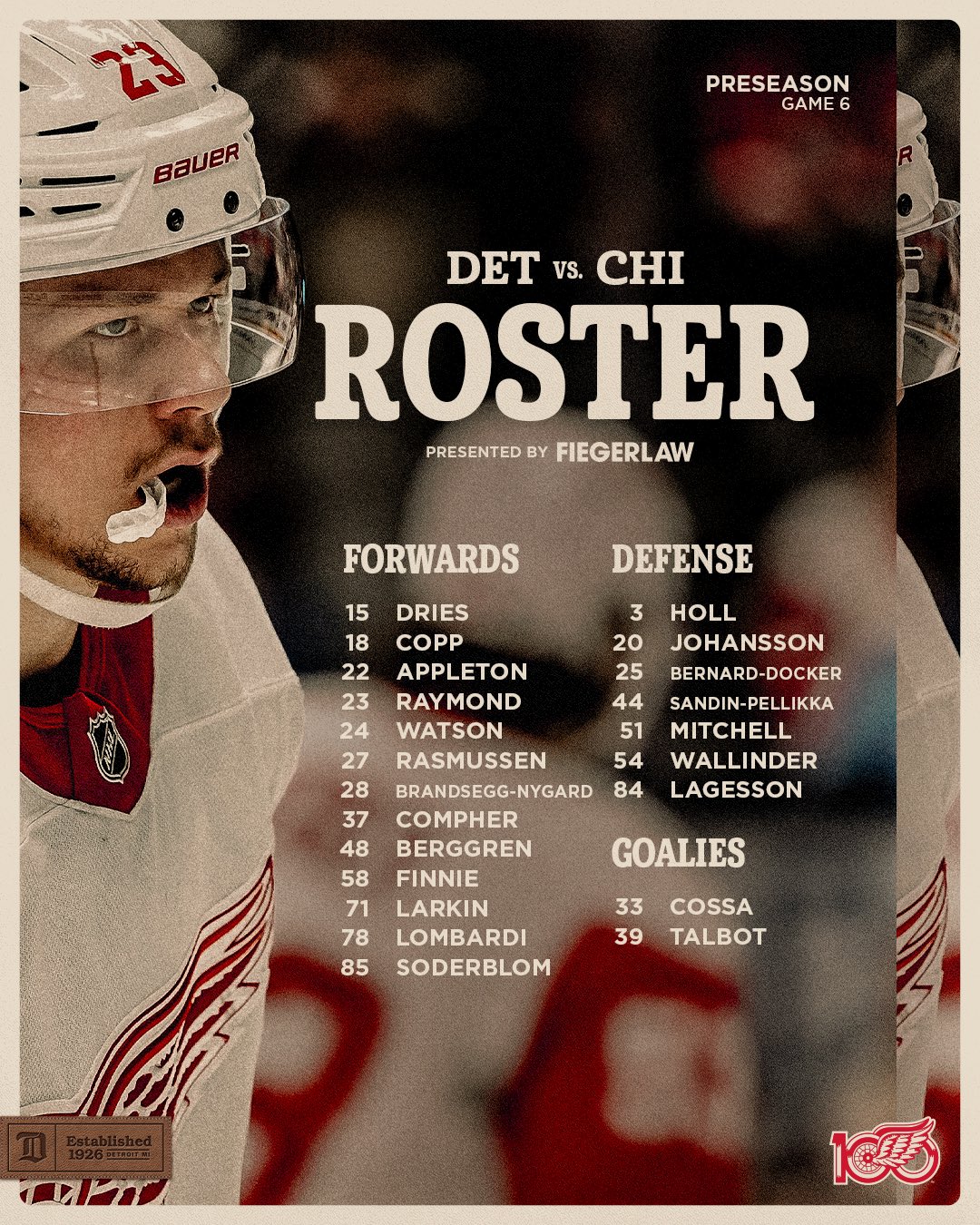 Detroit easily dispatched of the Hawks during last week’s preseason opener, beat the Buffalo Sabres on Thursday and then have dropped three straight in the preseason. Detroit still isn’t quite running out its top team for this game, but the lineup seems a little more NHL-heavy than the one from last Tuesday: