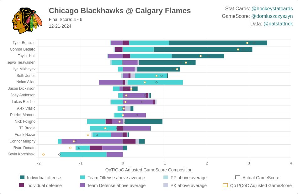 As for Jones, his overall game overall was honestly fine. He did look a little rusty, but that’s to be expected. There were some Blackhawks fans ragging on him, but there weren’t any other particularly large mistakes from him outside that one power play. There was no reason for him to play 18:10 at 5-on-5 and over 26 minutes overall, though. Like, try easing the guy back in and let Alex Vlasic keep eating the most minutes because he’s been great in that role.